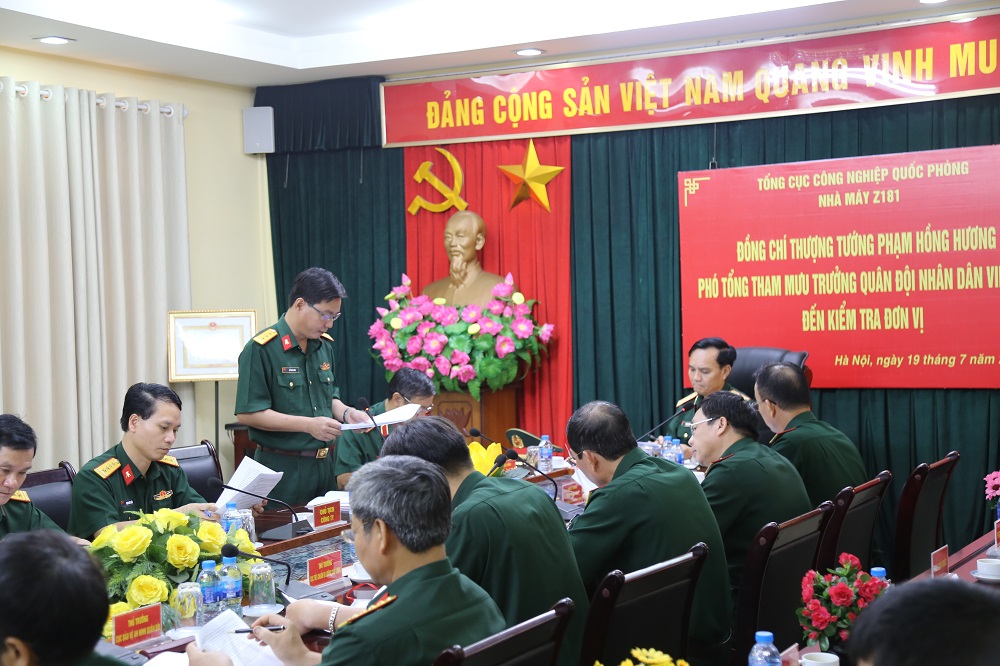 Thượng tướng Phạm Hồng Hương – Phó Tổng Tham mưu trưởng QĐNDVN đến kiểm tra và làm việc tại Nhà máy.