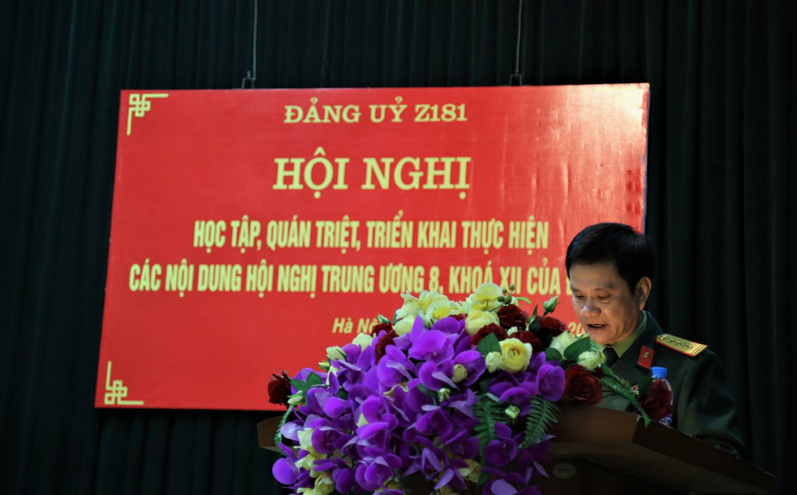 Chiều 25-12-2018, Đảng ủy Z181 tổ chức Hội nghị học tập, quán triệt, triển khai thực hiện các nội dung Hội nghị Trung ương 8, khóa XII. Đại tá Phạm Văn Tuấn - Bí thư Đảng ủy Chính ủy Nhà máy chủ trì hội nghị.
