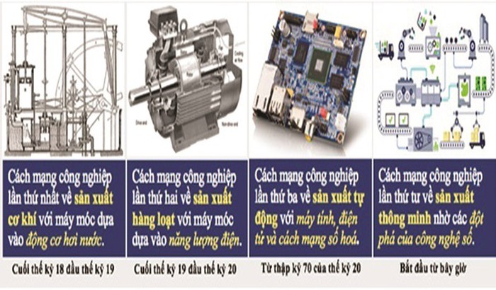 Thế giới đã trải qua ba cuộc cách mạng công nghiệp với các bước phát triển nhảy vọt về khoa học, công nghệ và hiện nay đang bước vào cuộc cách mạng công nghiệp lần thứ Tư (Cách mạng công nghiệp 4.0). Bản chất của cuộc cách mạng này là dựa trên nền tảng công nghệ số và sự tích hợp các công nghệ thông minh trên lĩnh vực vật lý và sinh học với trung tâm là sự phát triển của trí tuệ nhân tạo (AI), vạn vật kết nối (IoT), dữ liệu lớn (Big Data), công nghệ na-nô, v.v. Theo đánh giá của các nhà chuyên môn, Cách mạng công nghiệp 4.0 có tốc độ đột phá chưa từng có trong lịch sử, tạo ra những khả năng hoàn toàn mới, làm thay đổi hầu hết các ngành công nghiệp ở mọi quốc gia, tác động sâu sắc đến mọi lĩnh vực đời sống xã hội. Trước đây, sự phát triển, tăng trưởng chủ yếu dựa vào các yếu tố đầu vào có giới hạn (nhân công, tài nguyên,...), thì giờ đây, khi áp dụng Cách mạng công nghiệp 4.0, sự tăng trưởng lại chủ yếu dựa vào các yếu tố không bị giới hạn (công nghệ, sự đổi mới sáng tạo,...); từ đó, tác động mạnh mẽ đến sản xuất, tiêu dùng, giá cả trên phạm vi toàn cầu, hình thành các lĩnh vực hoạt động mới, như: “In-tơ-nét công nghiệp”, “Nhà máy thông minh”, “Thành phố công nghệ”, “Xã hội siêu thông minh”, v.v. Đồng thời, tác động mạnh mẽ, tạo cơ sở tối ưu hóa quá trình, phương thức chỉ đạo, quản lý, điều hành các hoạt động chính trị, xã hội, kinh tế, quốc phòng, an ninh. Bên cạnh đó, Cách mạng công nghiệp 4.0 cũng đặt ra những thách thức, như: có thể làm chậm lại, thậm chí làm đổi hướng sự chuyển dịch trọng tâm chiến lược kinh tế toàn cầu, gia tăng sự bất bình đẳng giữa các quốc gia, tác động tiêu cực đến các nước chủ yếu dựa vào nguồn nhân công rẻ, buộc các nước phải tái cơ cấu nền kinh tế; một số ngành kinh tế bị thu hẹp, đào thải; nhóm lao động giản đơn, lớn tuổi, ít kỹ năng, gắn với công nghệ cũ có nguy cơ thất nghiệp rất cao.