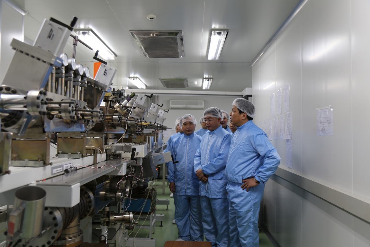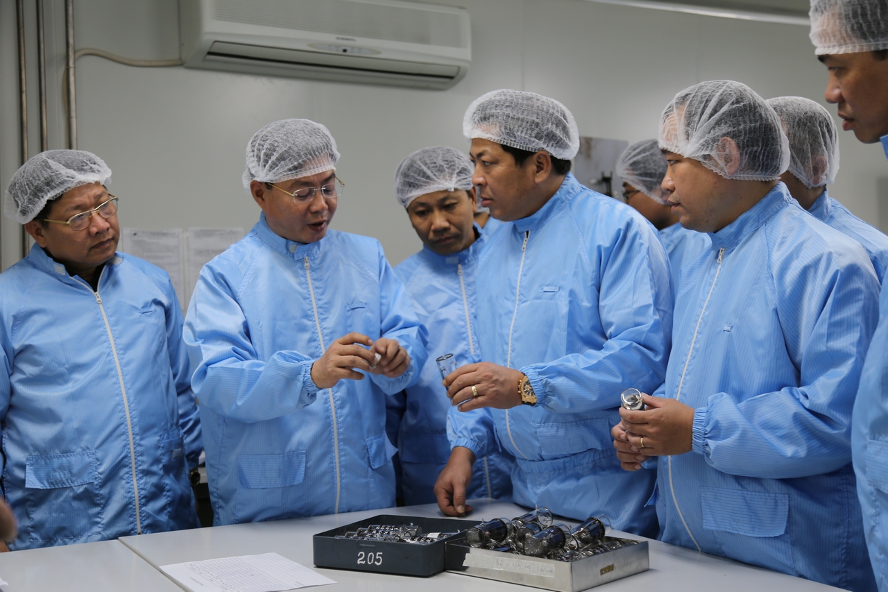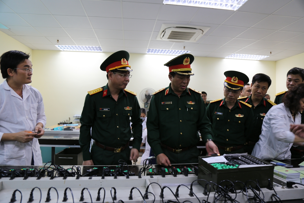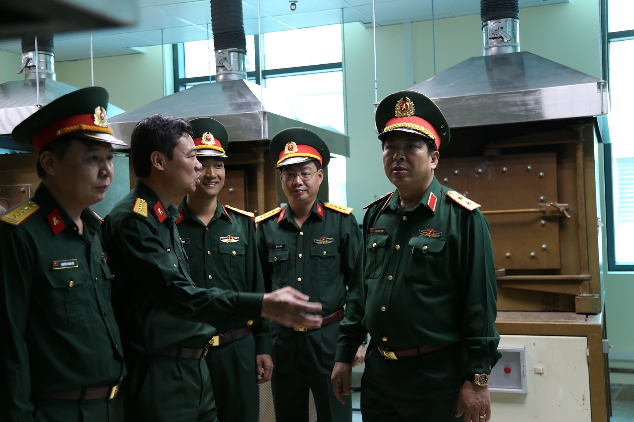 Đồng chí Trung tướng Trần Hồng Minh - Phó BTĐU, Chủ nhiệm Tổng cục CNQP kiểm tra dây chuyền sản xuất Gốm áp điện