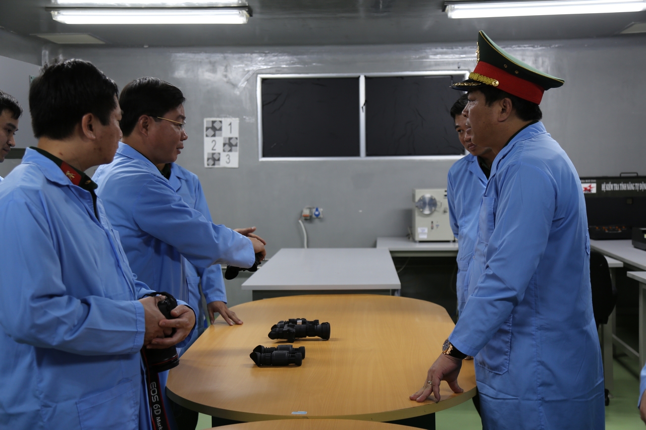 Đồng chí Trung tướng Trần Hồng Minh - Phó BTĐU, Chủ nhiệm Tổng cục CNQP kiểm tra phân xưởng nguồn và thiết bị chiếu sáng