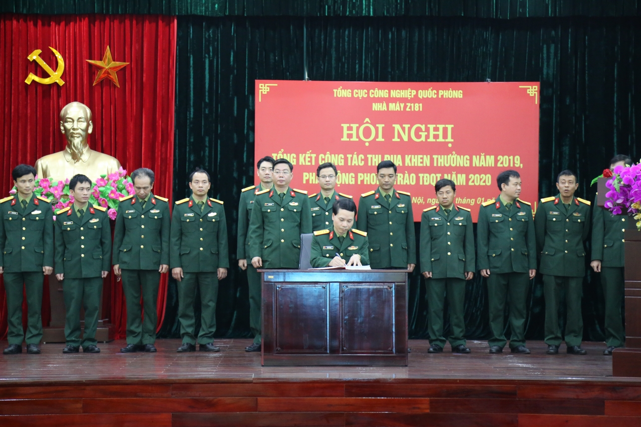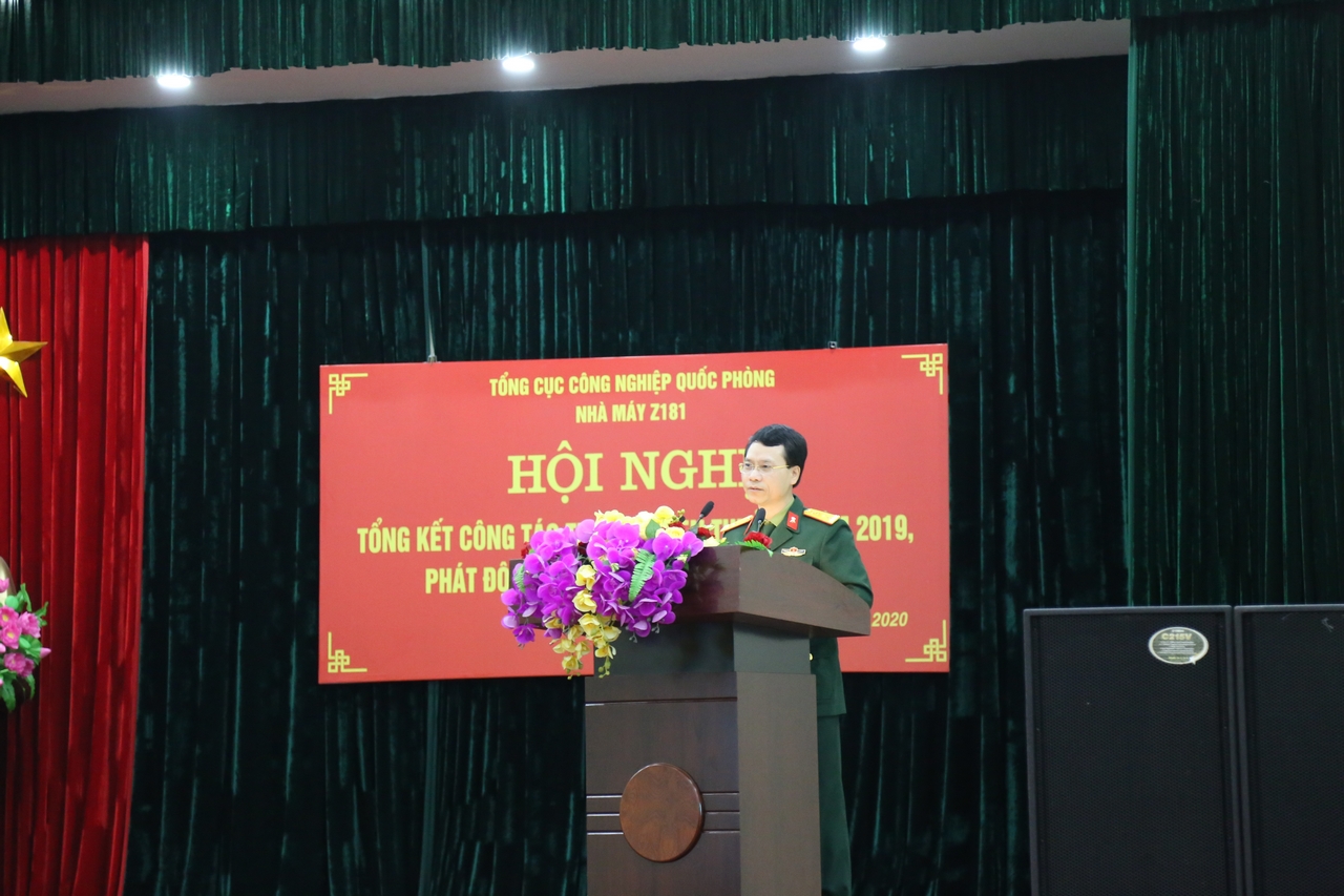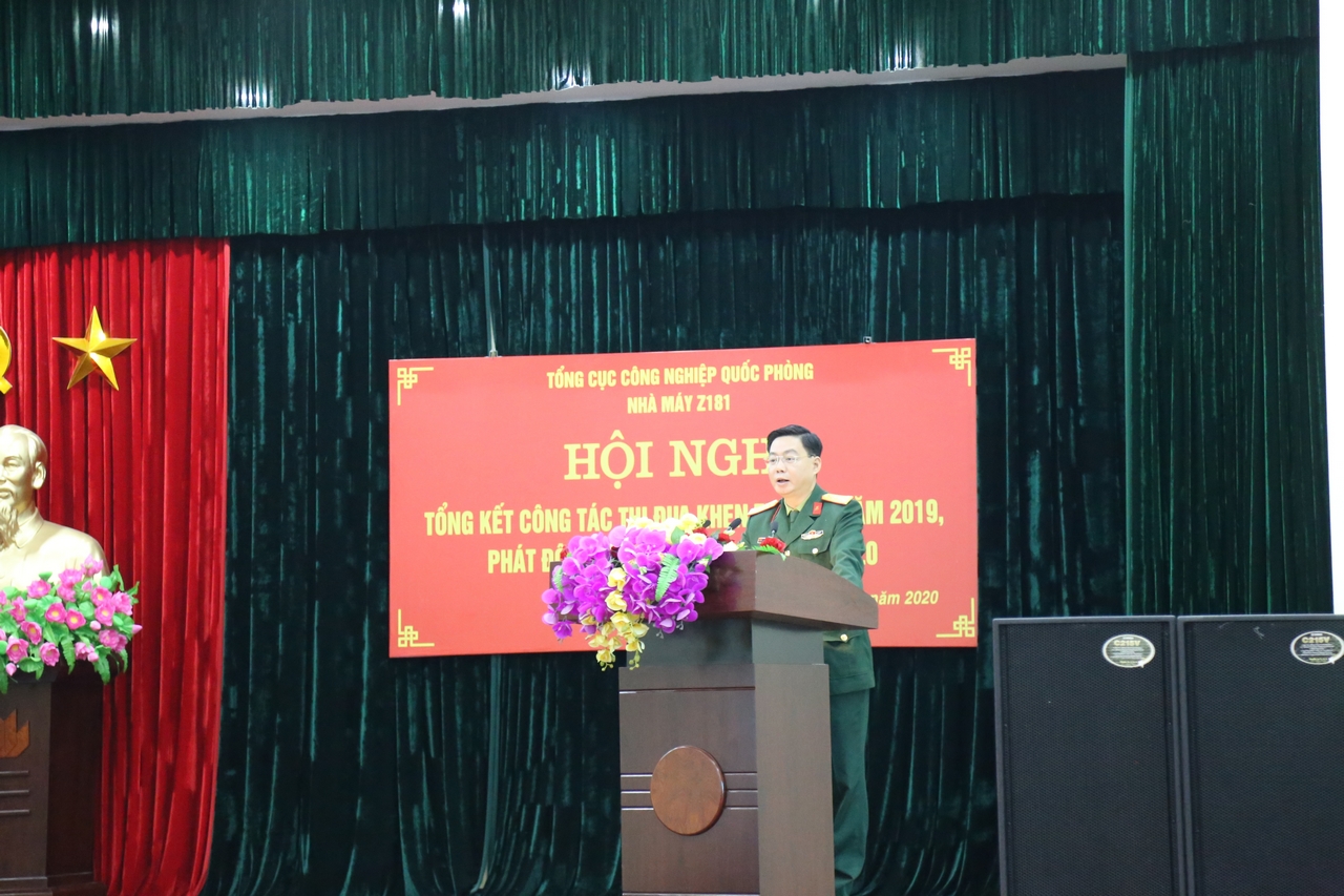Đồng chí củ tịch Hội đồng Thi đua khen thưởng đã đọc bản báo cáo Tổng kết phong trào Thi đua quyết thắng năm 2019. Trong đó có tóm tắt những thuận lợi và khó khăn trong năm 2019 như sau: Năm 2019, công tác TĐKT và phong trào TĐQT của Nhà máy được triển khai trong điều kiện có nhiều hoạt động chào mừng, kỷ niệm các ngày lễ lớn của đất nước, Quân đội, Tổng cục và Nhà máy Z181 chào mừng kỷ niệm 40 năm Ngày truyền thống (15/9/1979 - 15/9/2019) và đón nhận Huân chương Bảo vệ tổ quốc Hạng 3 đã tạo sự lan tỏa và điều kiện thuận lợi thúc đẩy phong trào TĐQT. Nhiệm vụ SX-KD của Nhà máy ổn định, cơ sở vật chất được đổi mới, đời sống, thu nhập của CBCNV ổn định và được cải thiện. Tuy nhiên, bên cạnh những thuận lợi, SX-KD của đơn vị còn gặp không ít khó khăn như: Các sản phẩm quốc phòng yêu cầu tiến độ giao hàng gấp, nhiều loại vật tư chính cho sản xuất phải nhập ngoại; sản phẩm kinh tế còn nhỏ, lẻ; chưa có sản phẩm chủ đạo.